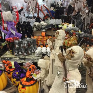 Le origini di Halloween;  fu fissata al 31 ottobre perché in questo giorno i pagani festeggiavano Samhain che rappresentava la fine dell’estate ma anche la fine del periodo di raccolta e l’inizio dell’inverno. Alcuni ritengono Halloween una festa satanica e che il 31 ottobre ha inizio l’anno nuovo delle streghe. Quest’anno la notte delle streghe cade lunedì 31 ottobre 2016. Nei giorni seguenti si susseguono gli Ognissanti e la commemorazione dei defunti. Per l’occasione grandi e bambini si potranno divertire con il travestimento. Come travestirsi ad Halloween? Di idee ce ne sono veramente tante, soprattutto al giorno d’oggi che il cinema horror ci propone vari mostri, alcuni davvero spaventosi, che si possono ricreare e riutilizzare in questa occasione. Nel nostro reparto allestito per questa festività, puoi trovare tutto quello che occorre per il tuo travestimento, (maschere, trucchi, teschi, giochi ecc..)