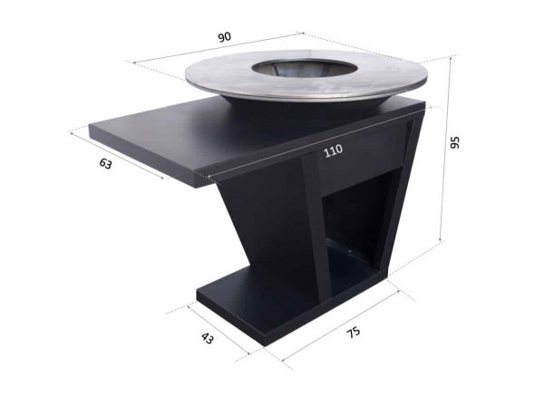 Alimentato con le braci del braciere, mantiene in caldo le vivande in tavola. Realizzato in alluminio verniciato con piano in acciaio inox.
