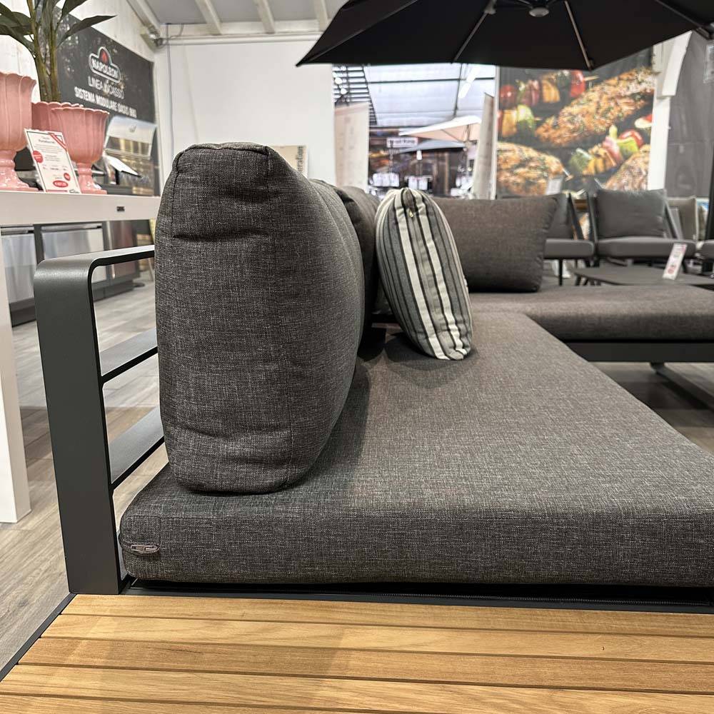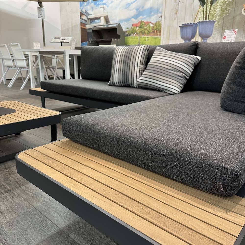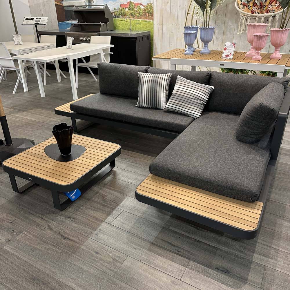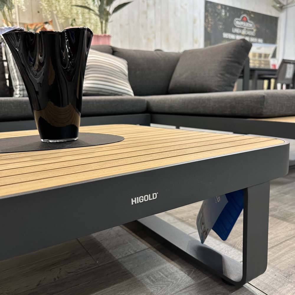 Il salotto Caribbean di Higold si caratterizza per la combinazione di due mini-salotti e un tavolino da caffè. Il textilene delle sedute dona un comfort particolare e rilassante al corpo, mentre la struttura in alluminio verniciato a polvere con inserti in Teak dona un tocco davvero elegante a tutto il set.