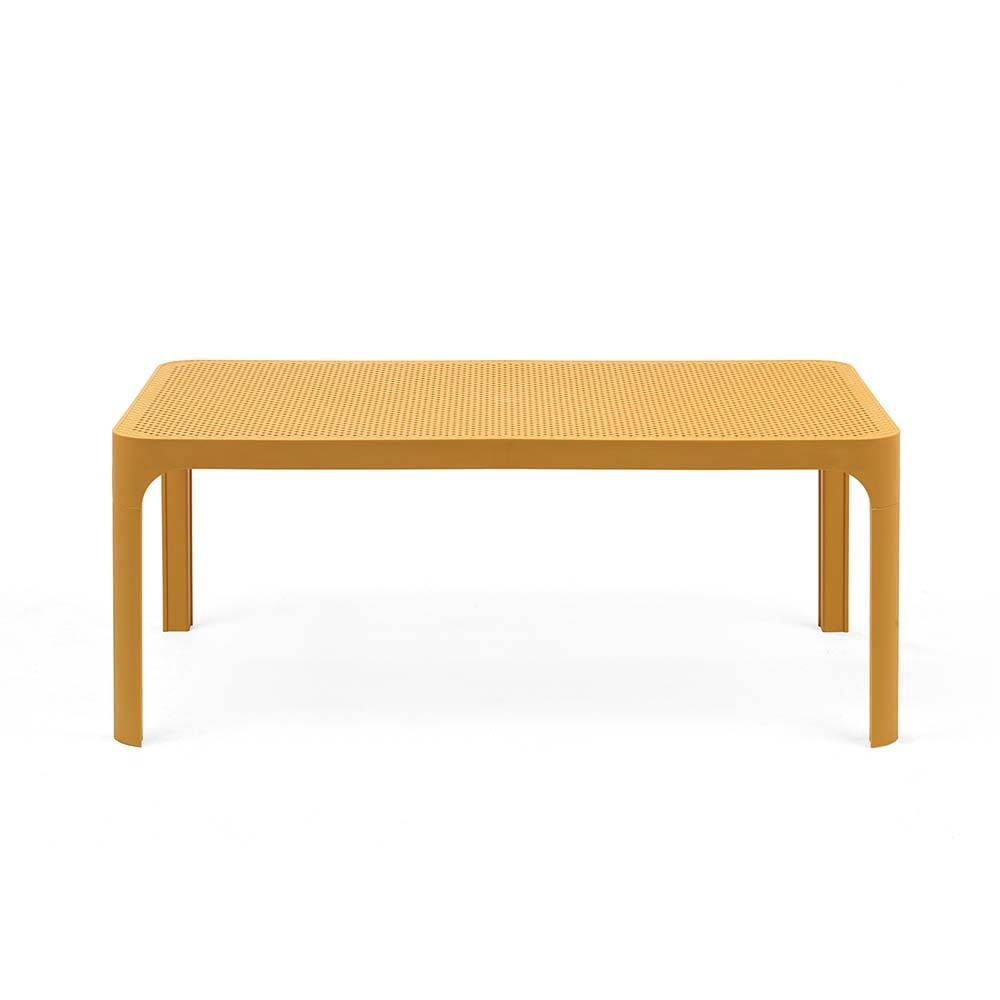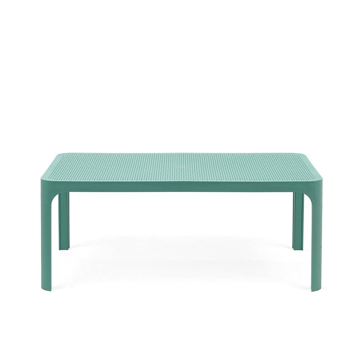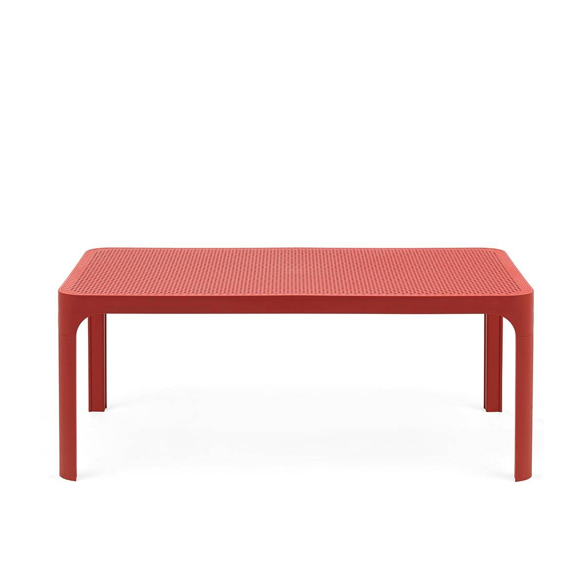 Il tavolo Net è un elegante tavolo da appoggio in resina fiberglass colorata in massa con piano rettangolare caratterizzato da un motivo bucherellato che riprende il leitmotiv di tutta la collezione Net. La resina è trattata anti-UV, è riciclabile ed ha una finitura opaca. Dotato di piedini antiscivolo.