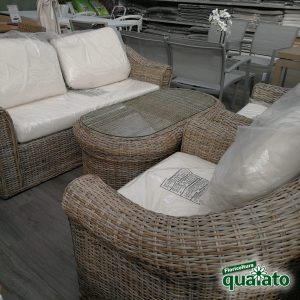 La fibra del Rattan Naturale deriva da una palma rampicante, è un materiale molto resistente alle intemperie e alla muffa, è inoltre molto leggero e per questo è impiegato in arredi da esterno.