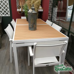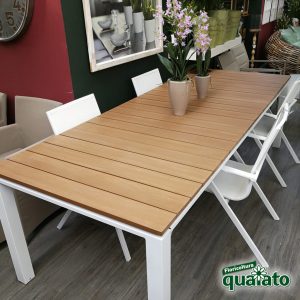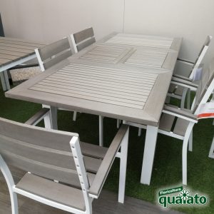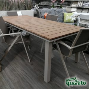 Tavolo con struttura in alluminio e piano in polywood allungabile.